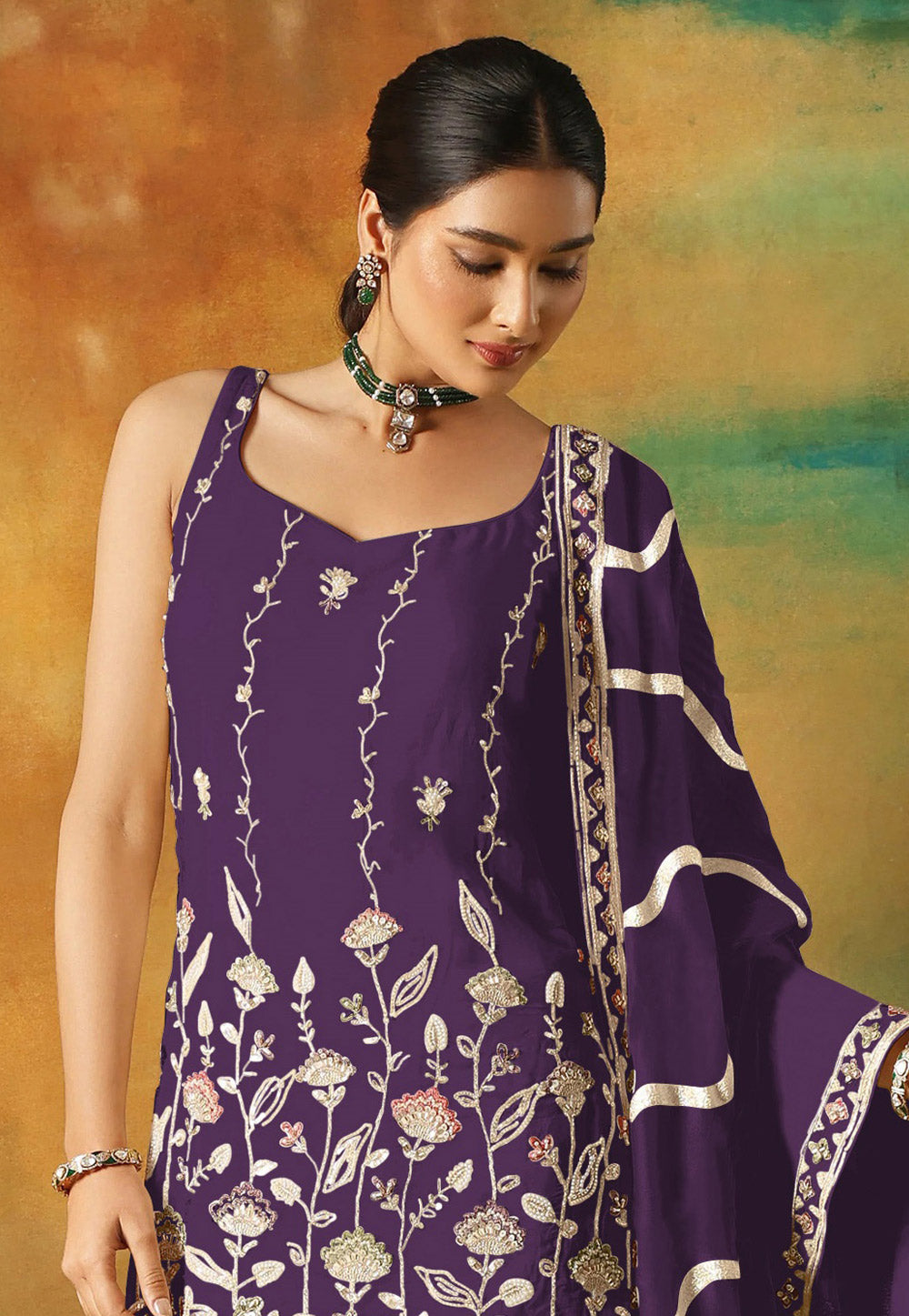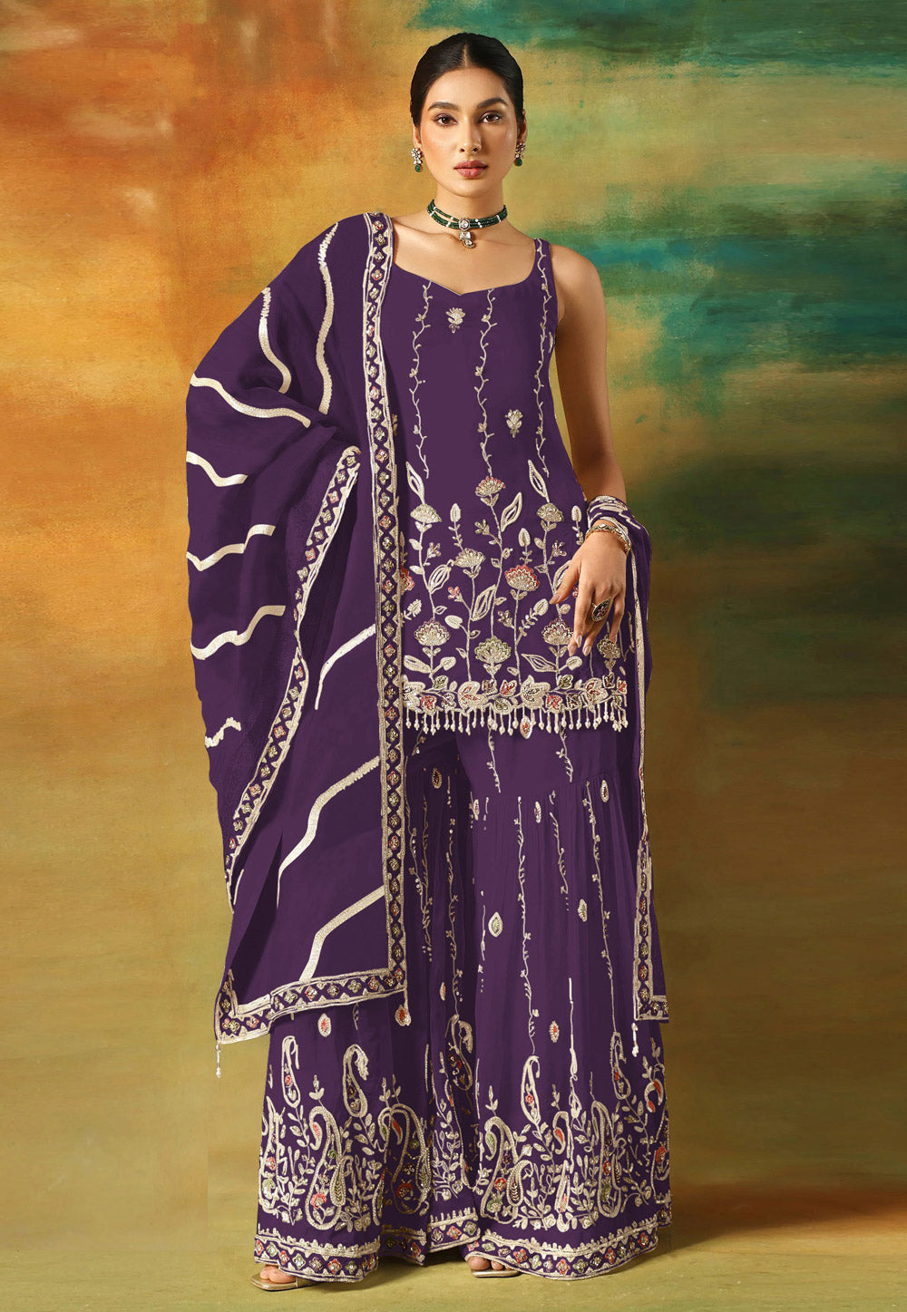 Purple Embroidered Gharara Suit