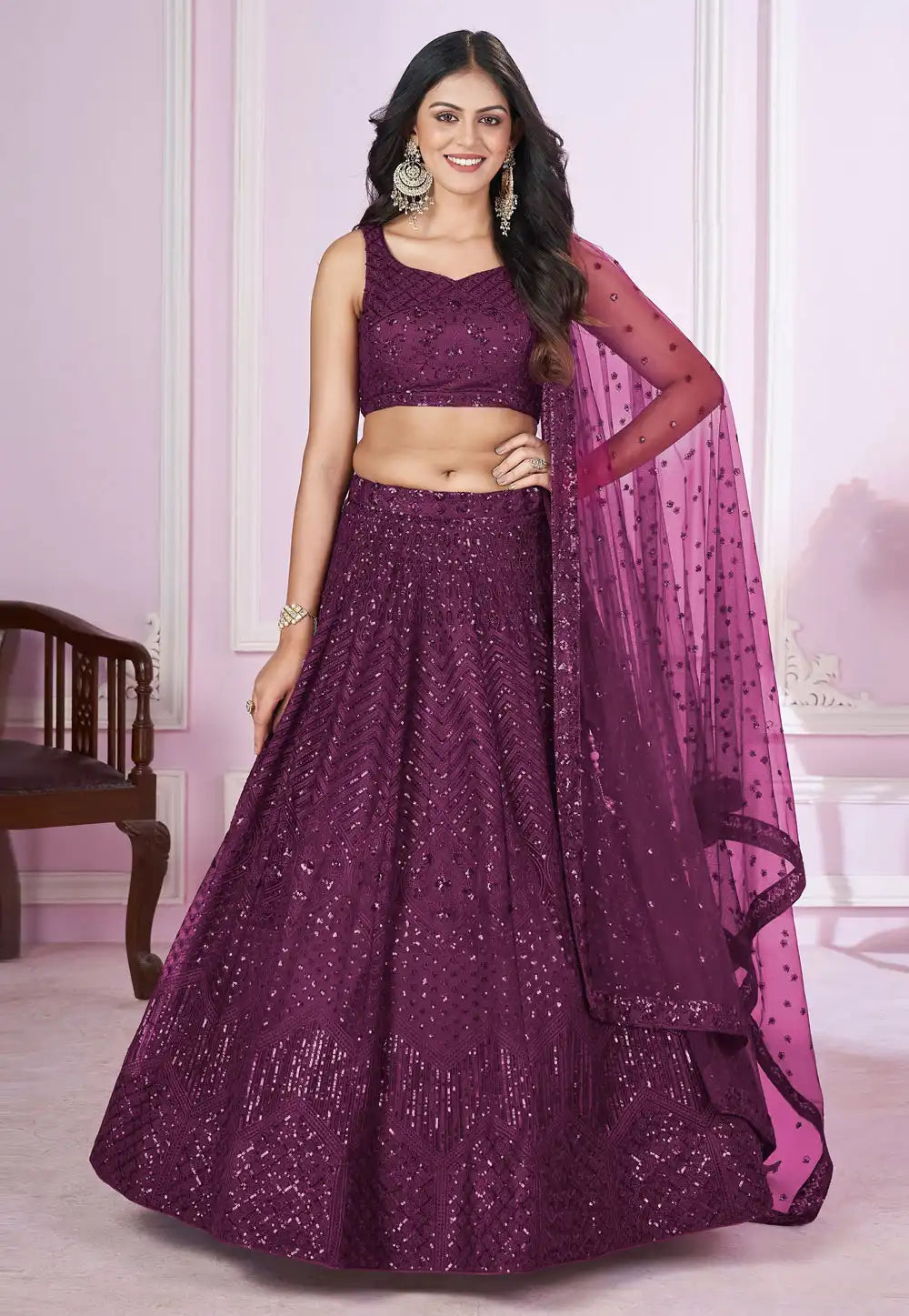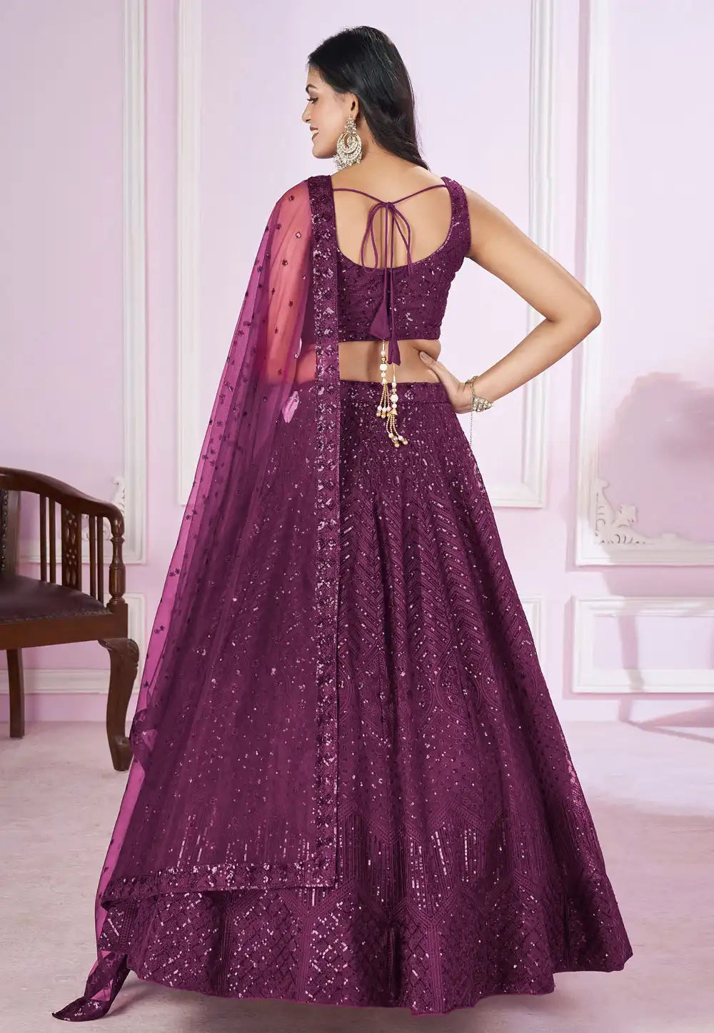 Elevate your style with our Purple Embroidered Lehenga Choli. This stunning ensemble features a beautifully embroidered soft net blouse and embroidered soft net lehenga, matched with a soft net dupatta. Embroidery is done using thread, sequins embroidery work. Perfect for any occasion, it's sure to make you stand out in the crowd.