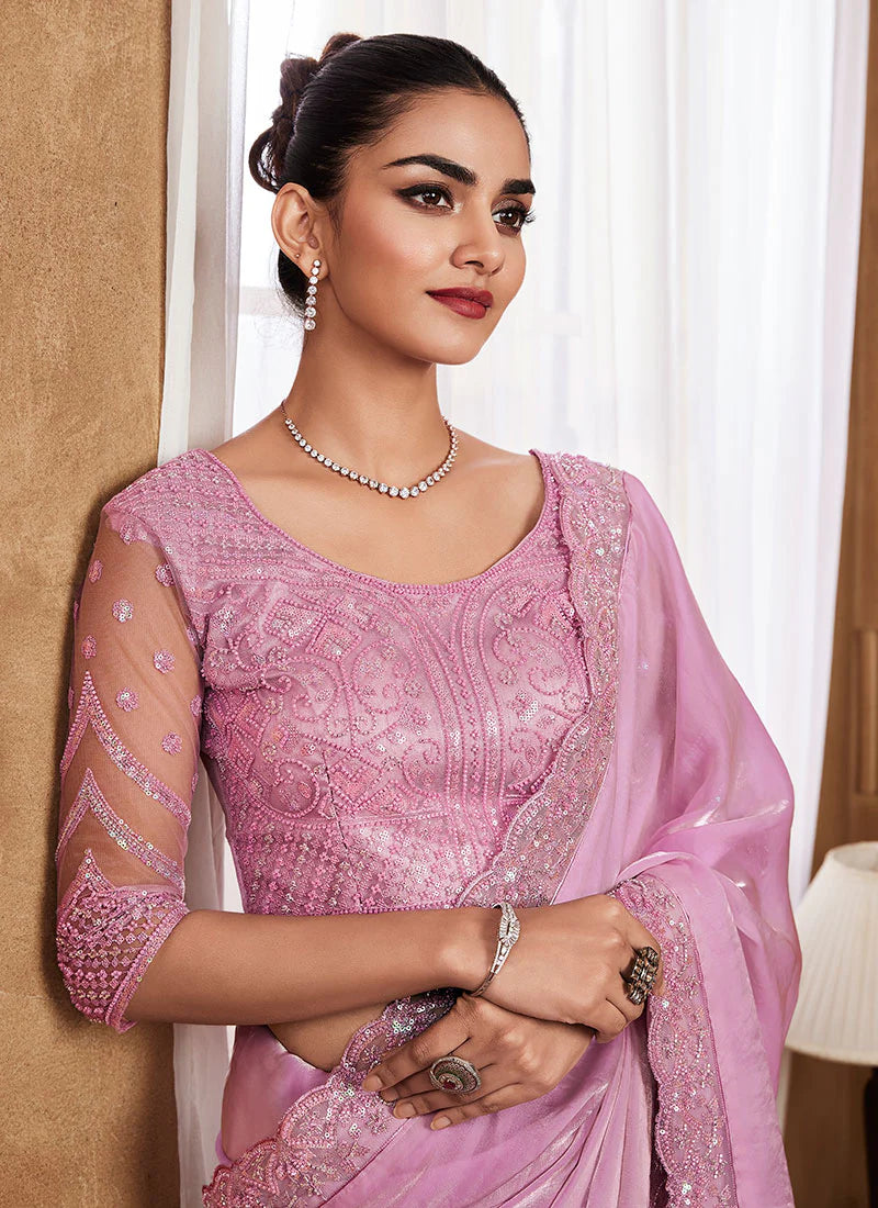 Purple Embroidered Saree