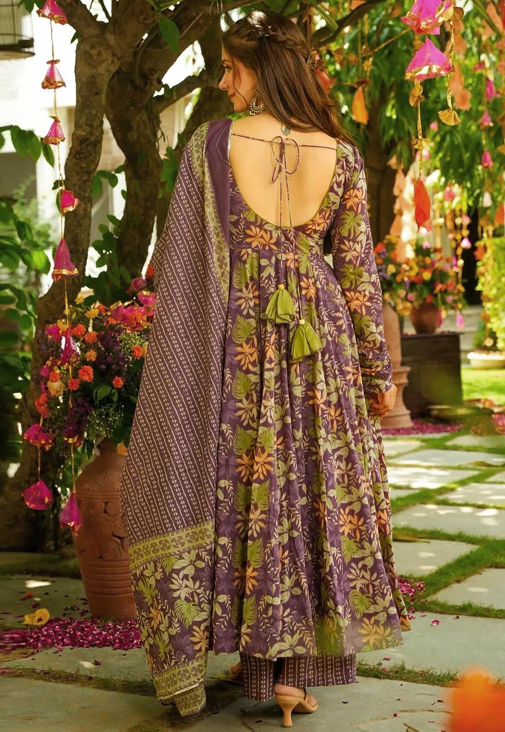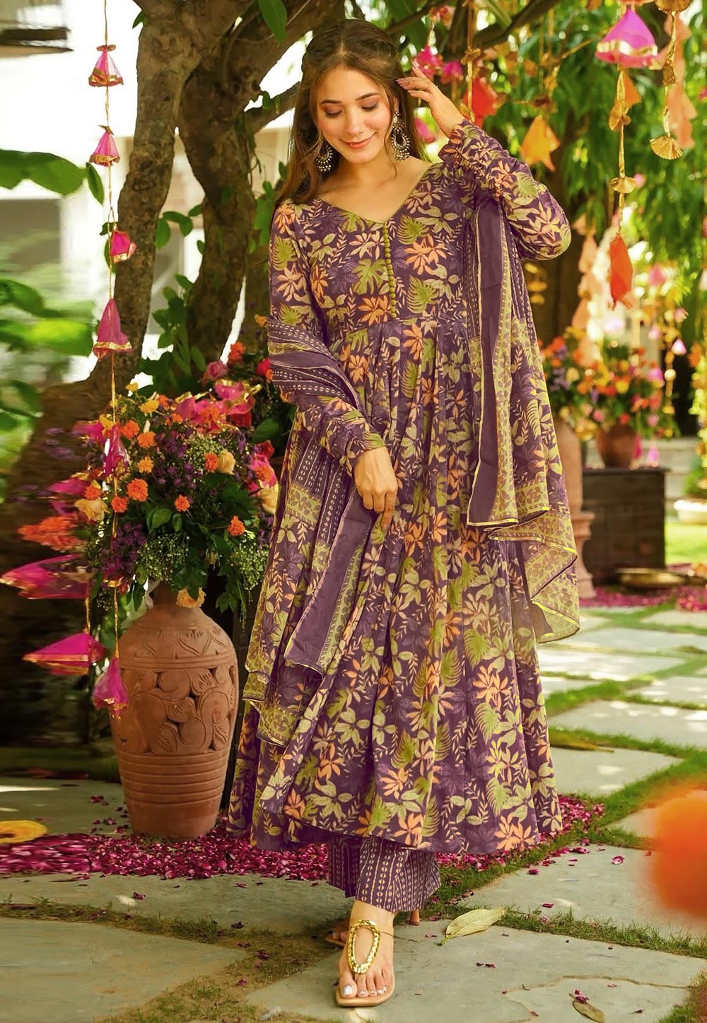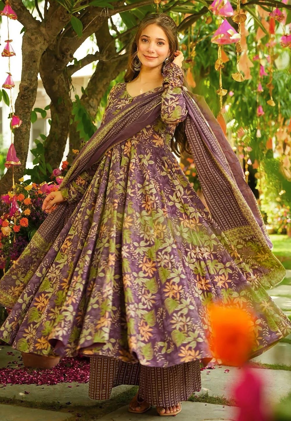 Purple Printed Anarkali Suit