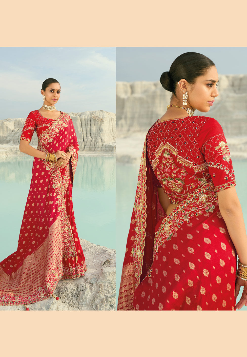 Work Technique: Embroidered using thread, zari, cut-dana work and moti work.