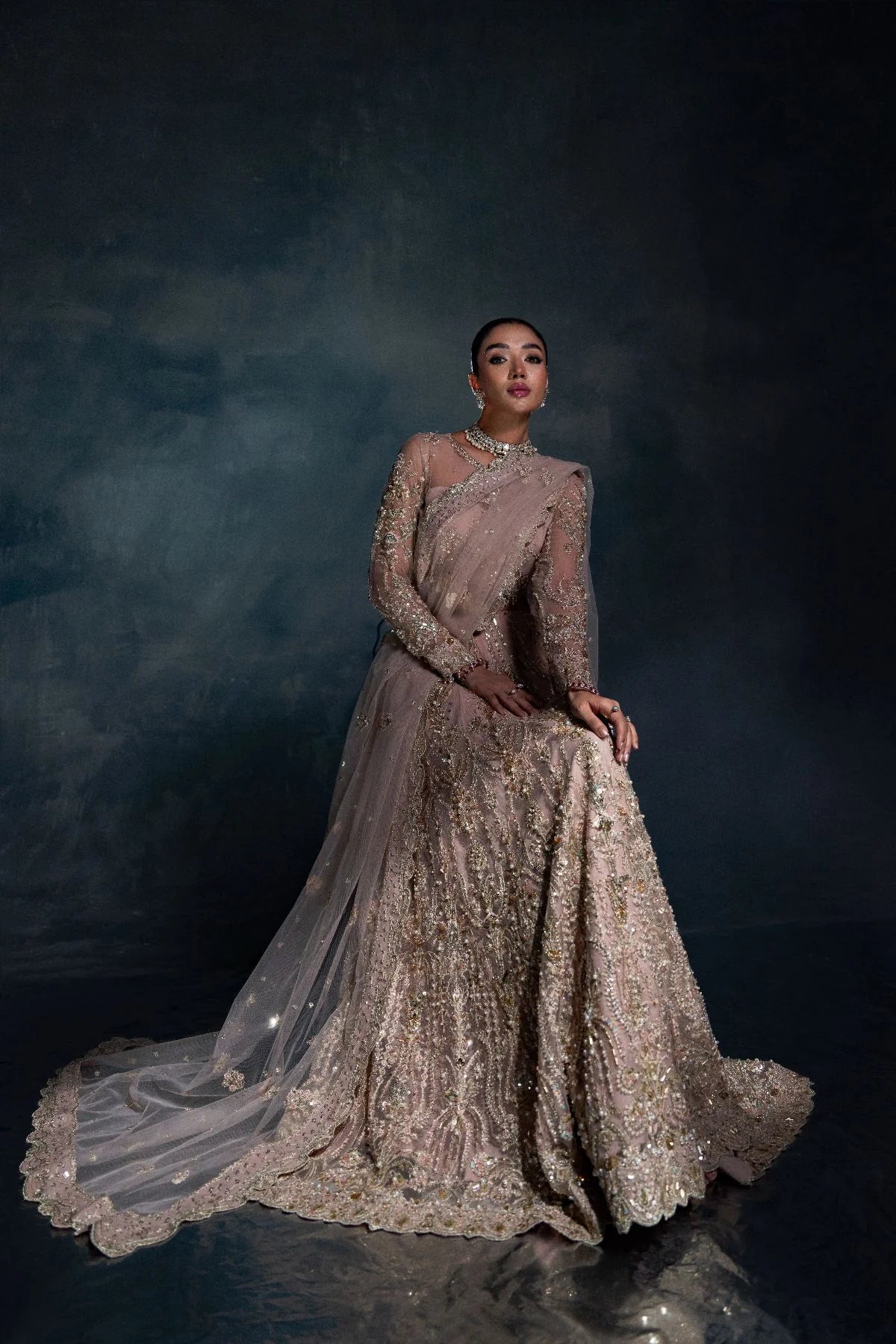 4. Embroidered & Hand Embellished Front Panels Lehnga (Net) – 7Pcs