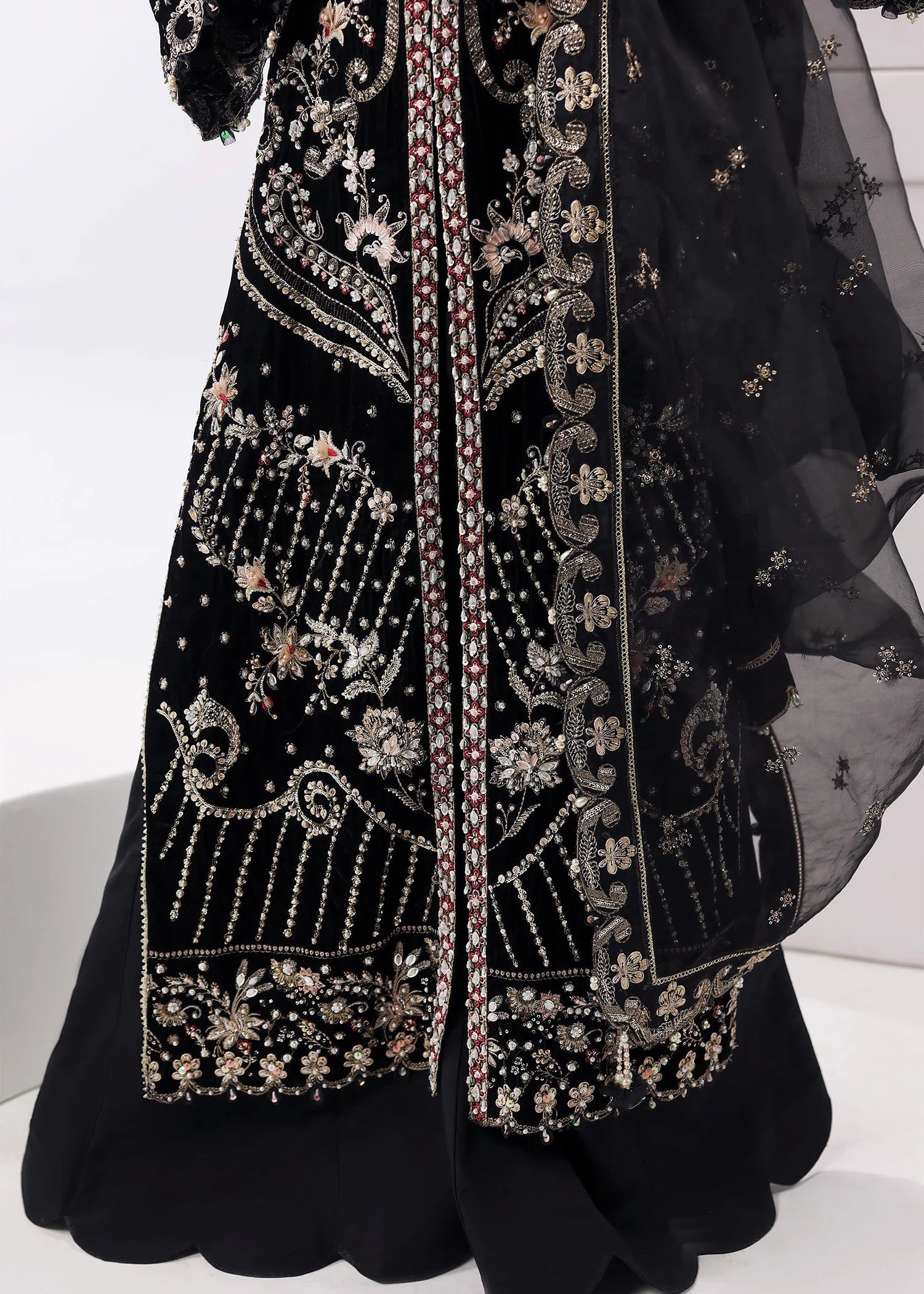 - Handwork & Embroidered Velvet Front Panels (Right+Left)