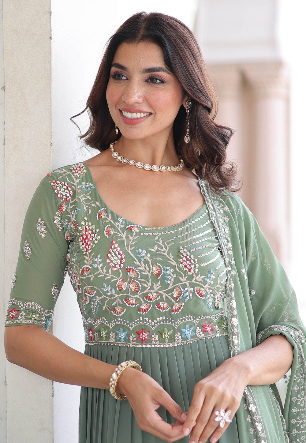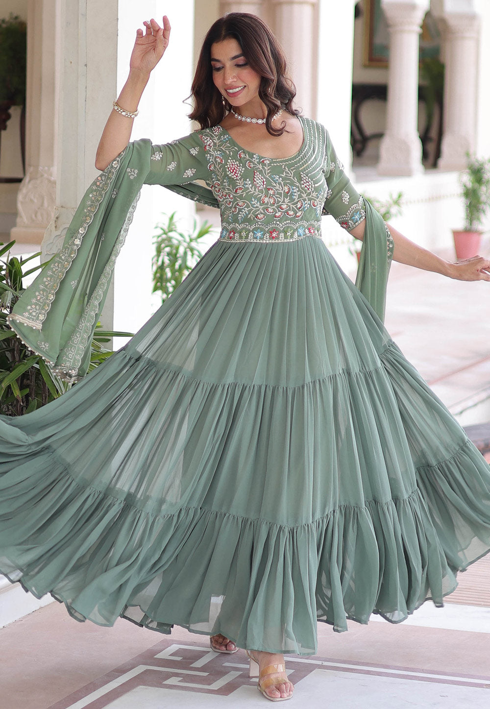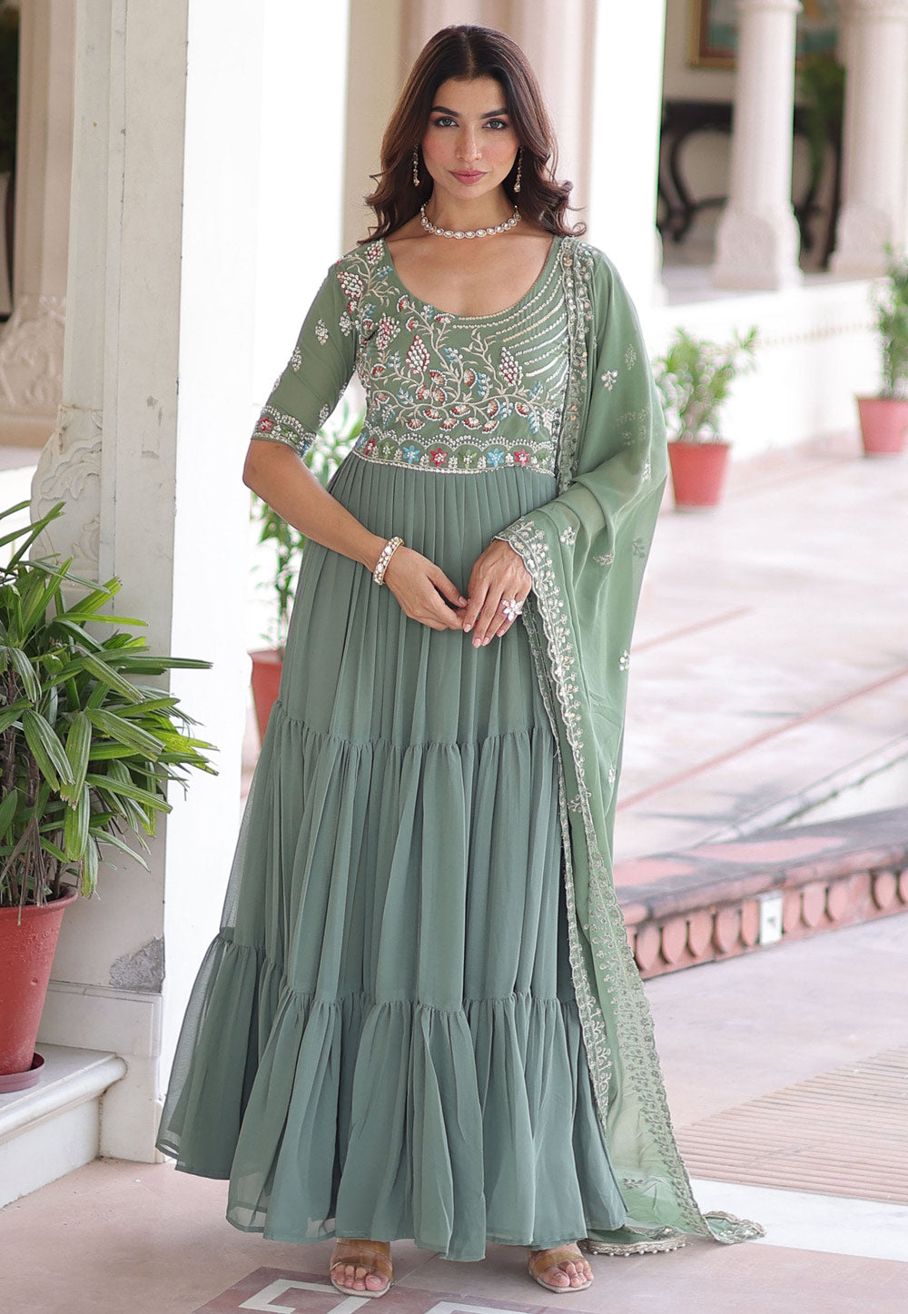Sea Green Embroidered Anarkali Gown