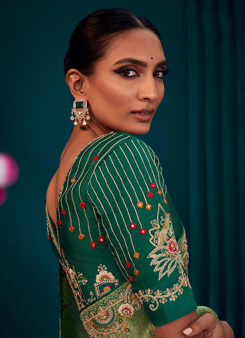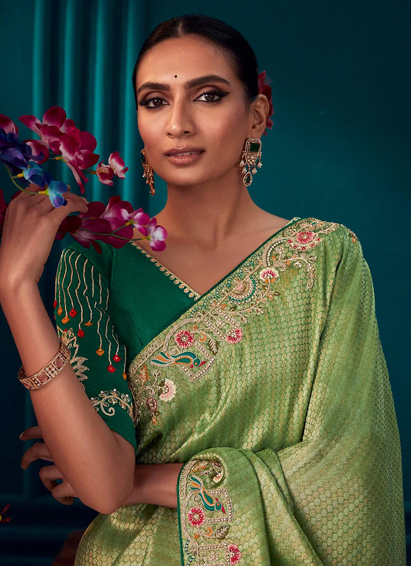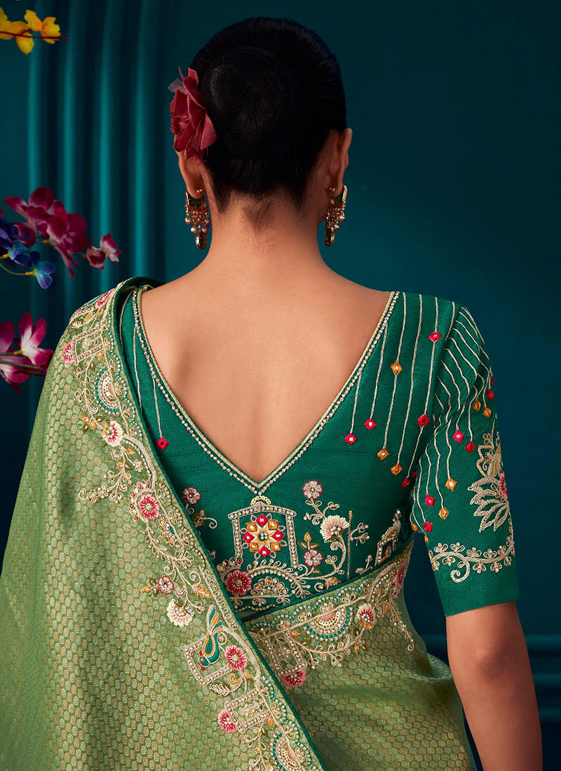 Sea Green Embroidered Wedding Saree