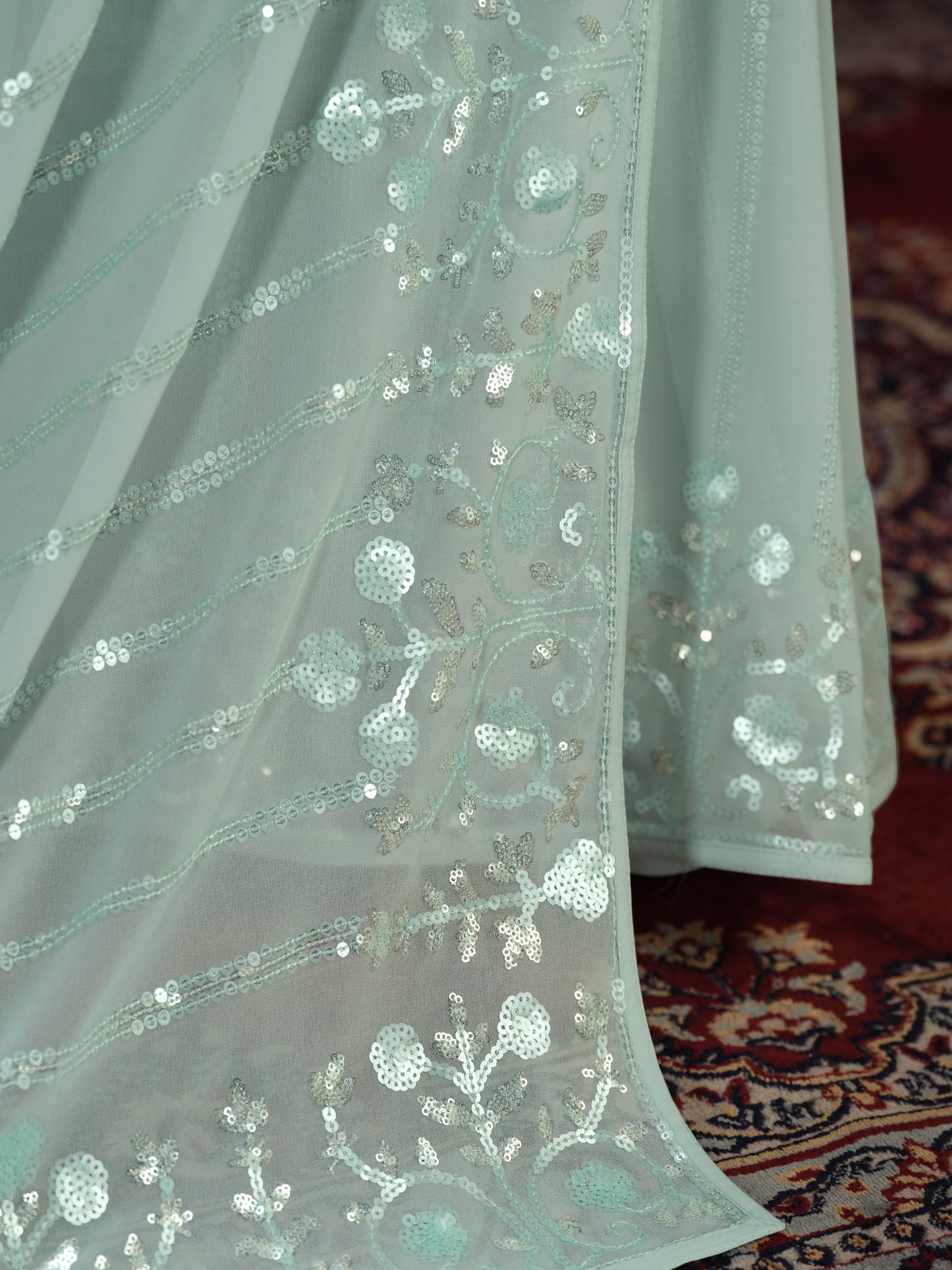 Sea Green Floral Embroidered Saree