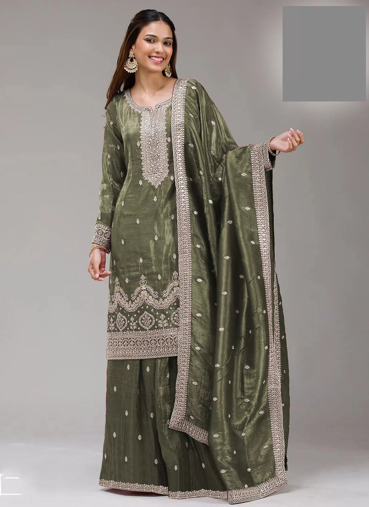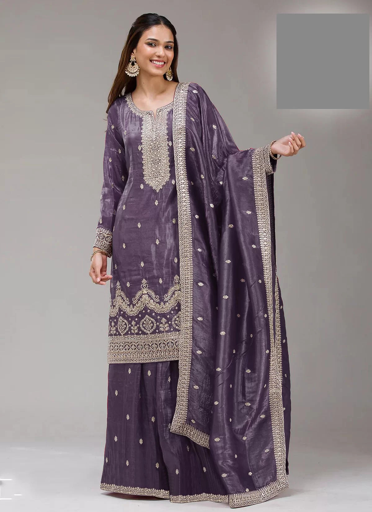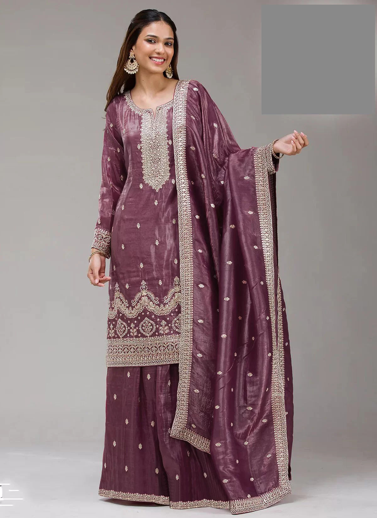 Sequins Embroidered Sharara Suit