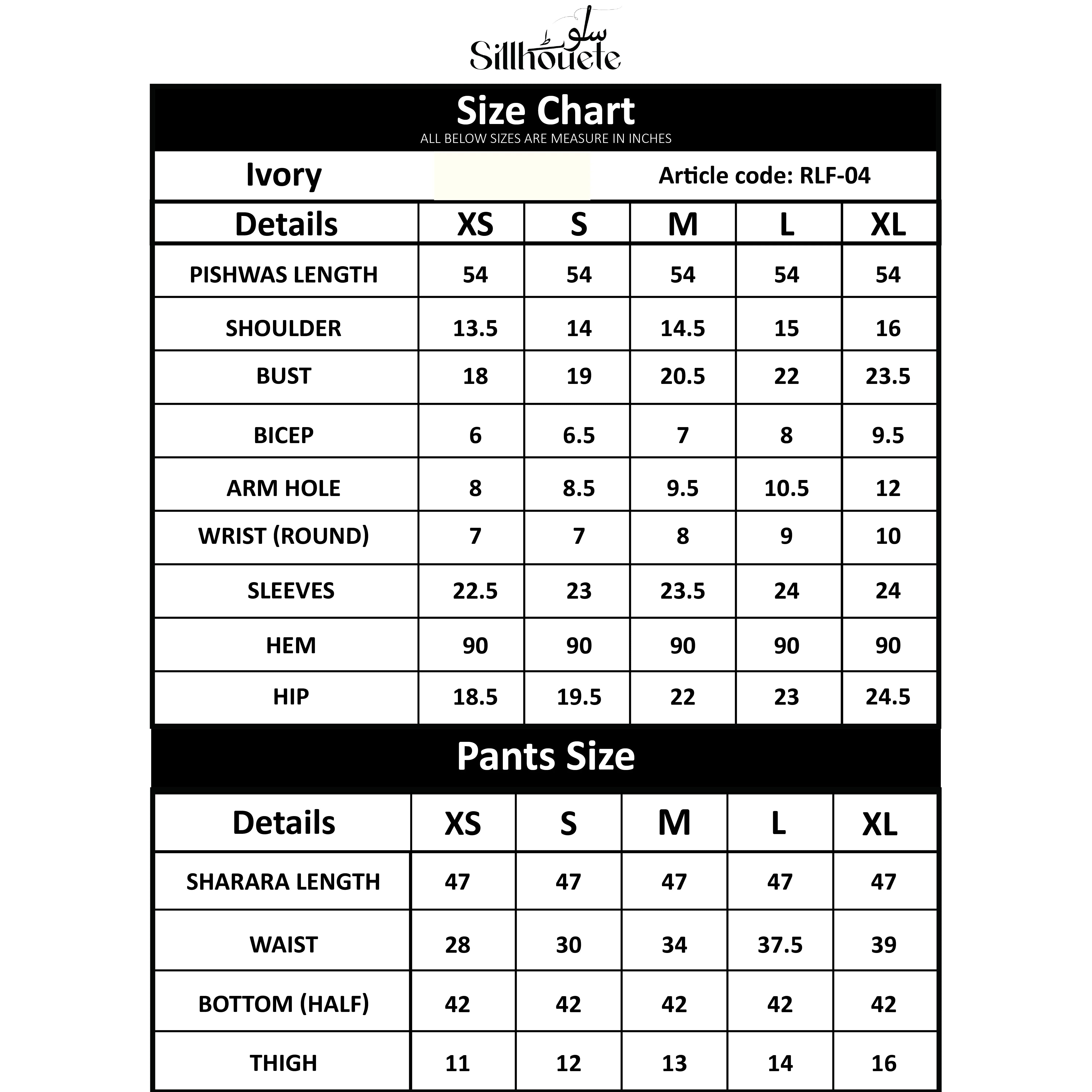 The pishwas features a zari net bustier that adds a bold touch of oomph, enhancing the sillhouete with subtle drama. Designed with a traditional cut infused with contemporary design elements, Adaa offers a regal yet fashion-forward look. The matching Sharara flows effortlessly, while the delicately embroidered dupatta completes the ensemble with grace.
