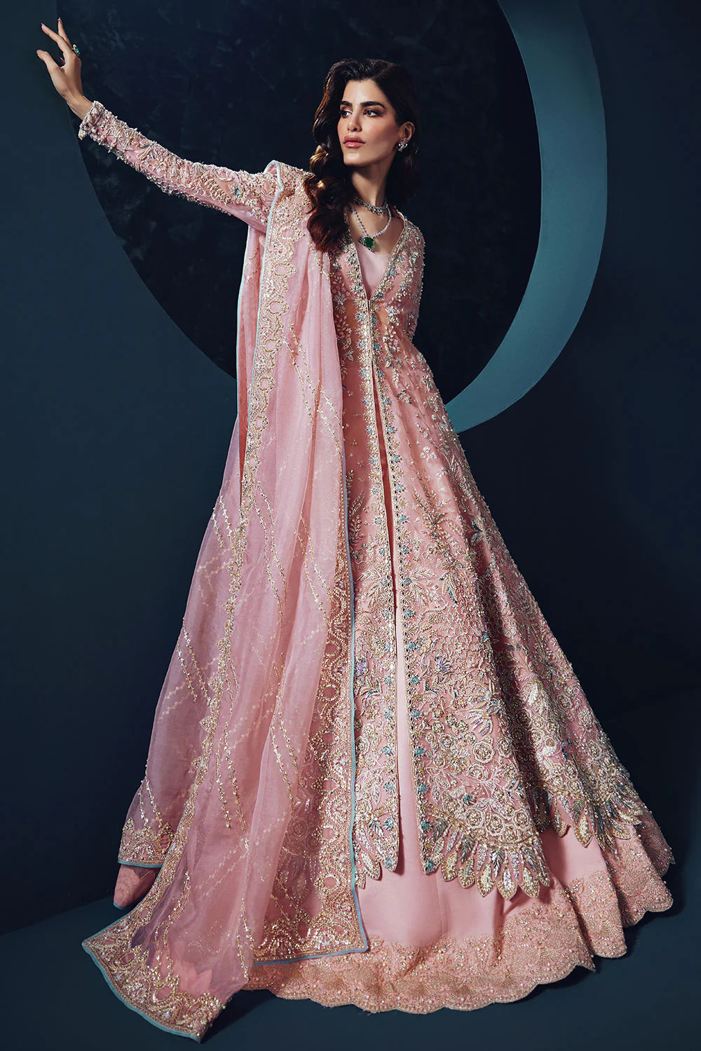 Allure is an enchanting pink front-open gown, where delicate drapes meet bold, modern style. The gown is beautifully complemented by a refined inner macy, offering both comfort and grace. With its ethereal flow and sophisticated cuts, Allure is the perfect choice for those seeking to radiate elegance and timeless charm with a touch of contemporary flair.