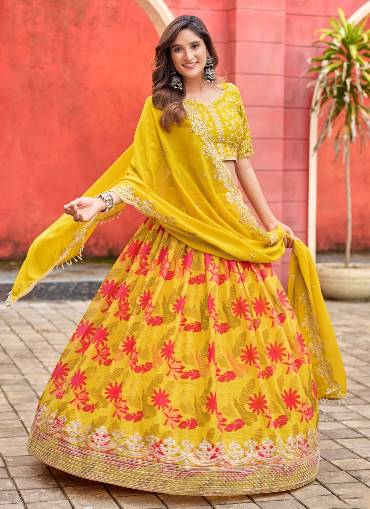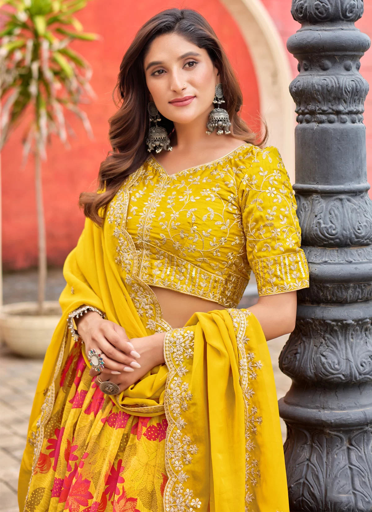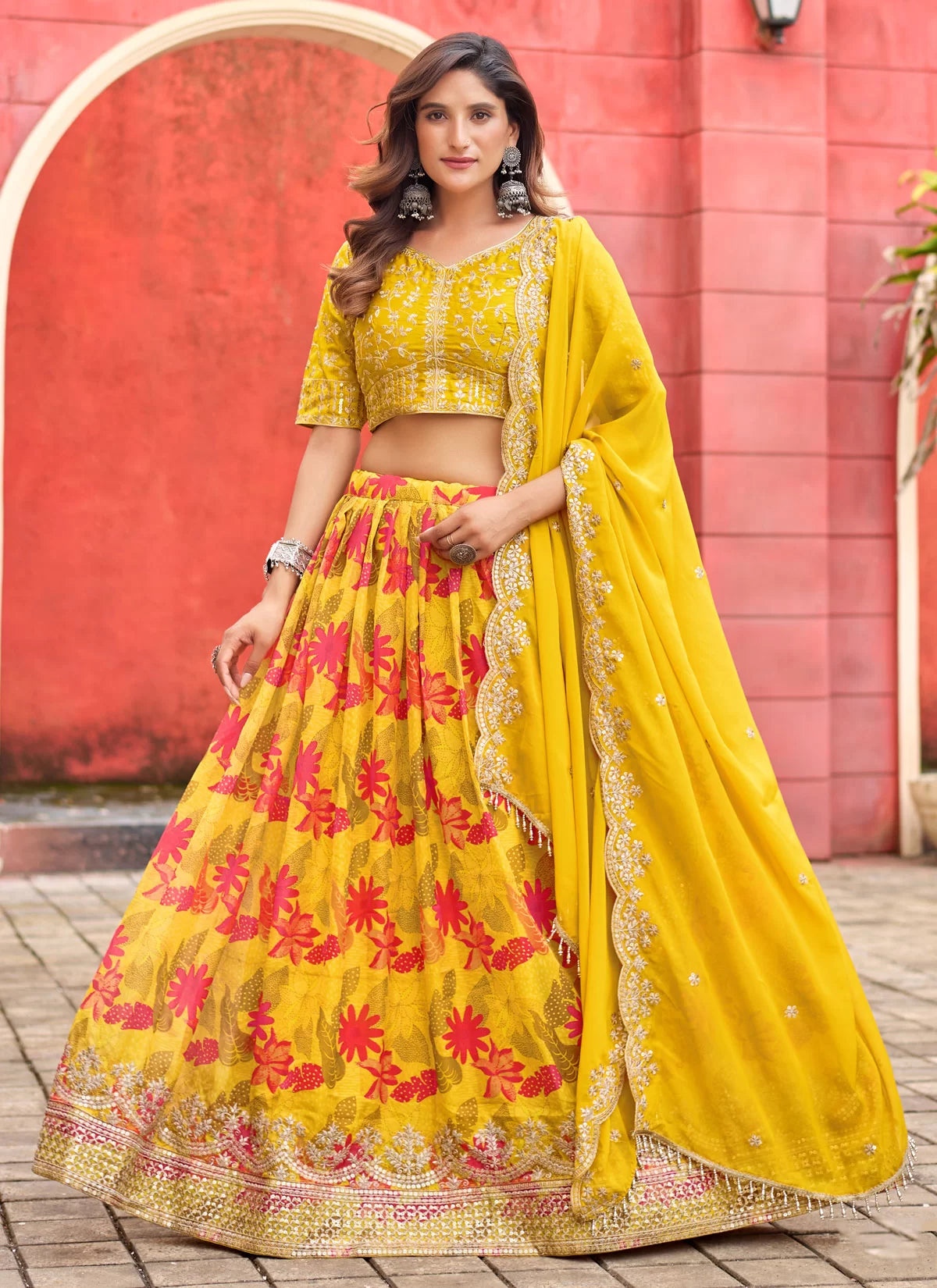 Yellow Printed and Embroidered Lehenga Choli